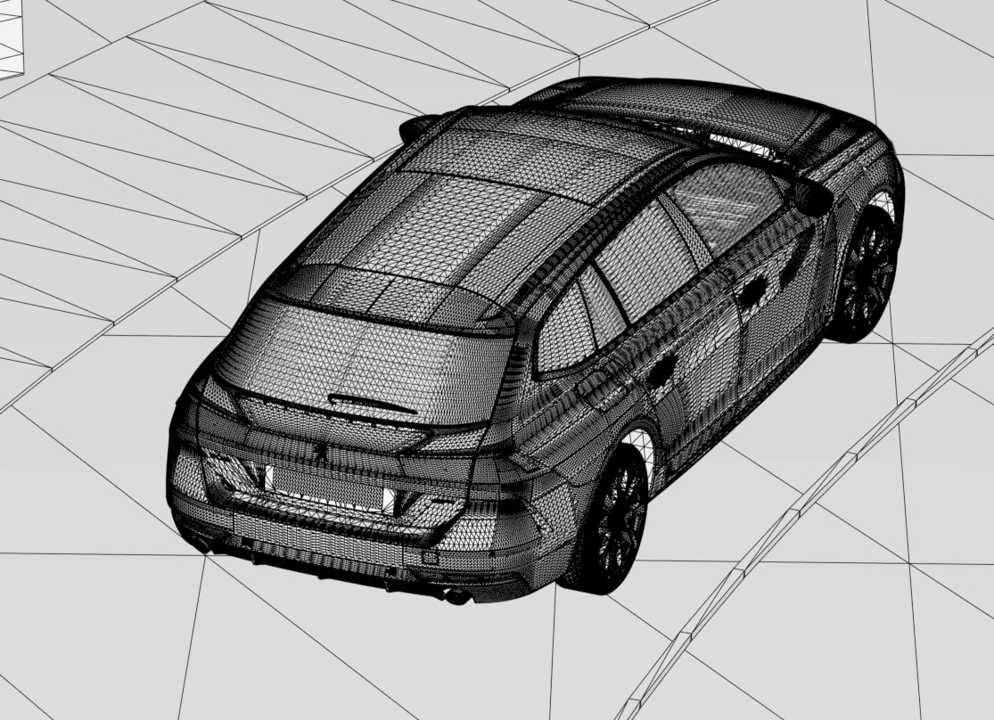 Intervention CGI sur les images ADAS du projet Peugeot 508SW, consistant au remplacement complet du véhicule par un modèle 3D, réalisé à partir des CAD fournis par Peugeot, tout en conservant strictement le cadrage, l’angle caméra et les conditions lumineuses de l’image d’origine.