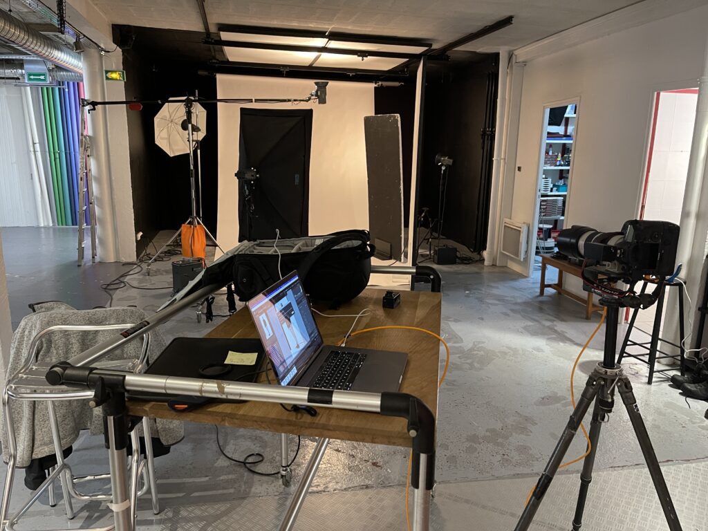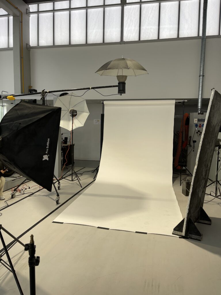 Un studio photo a été monté directement sur le lieu du tournage de la publicité audiovisuelle afin de réaliser les prises de vue fixes. Le concept reposait sur un même mannequin, incarnant tour à tour l’étudiant puis son futur métier, ici soudeur, se faisant face dans une mise en scène symbolique. J’ai assuré la prise de vue photographique des deux rôles, en veillant à une cohérence précise des postures, des regards et de la lumière, afin de faciliter l’assemblage final et renforcer l’idée de confrontation entre présent et avenir.