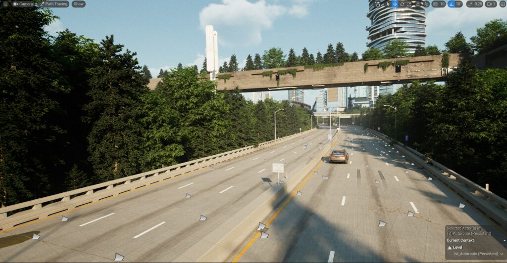 L’ensemble de la production a été réalisé sous Unreal Engine, incluant la mise en place complète du rig de la voiture ainsi que la préparation et l’optimisation des assets 3D. Ce travail a permis une grande flexibilité dans la mise en scène, l’animation et le rendu en temps réel, tout en garantissant un haut niveau de réalisme.