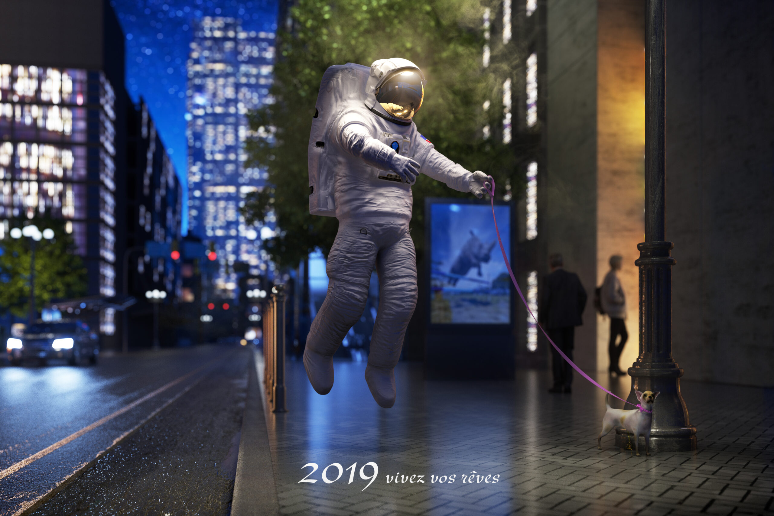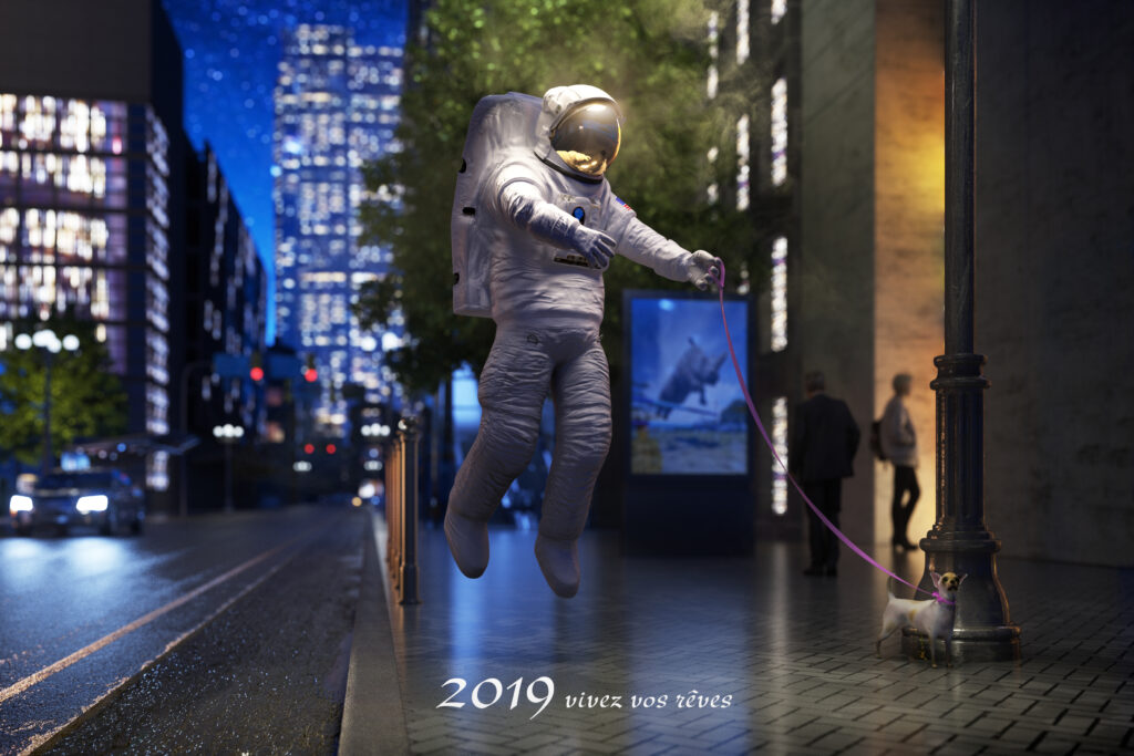 Réalisées tantôt en photographie traditionnelle, tantôt en CGI, ces cartes étaient devenues un rendez-vous attendu. Je les faisais imprimer et les envoyais par courrier, comme de vraies cartes postales, prolongeant ainsi le geste au-delà du simple message numérique.