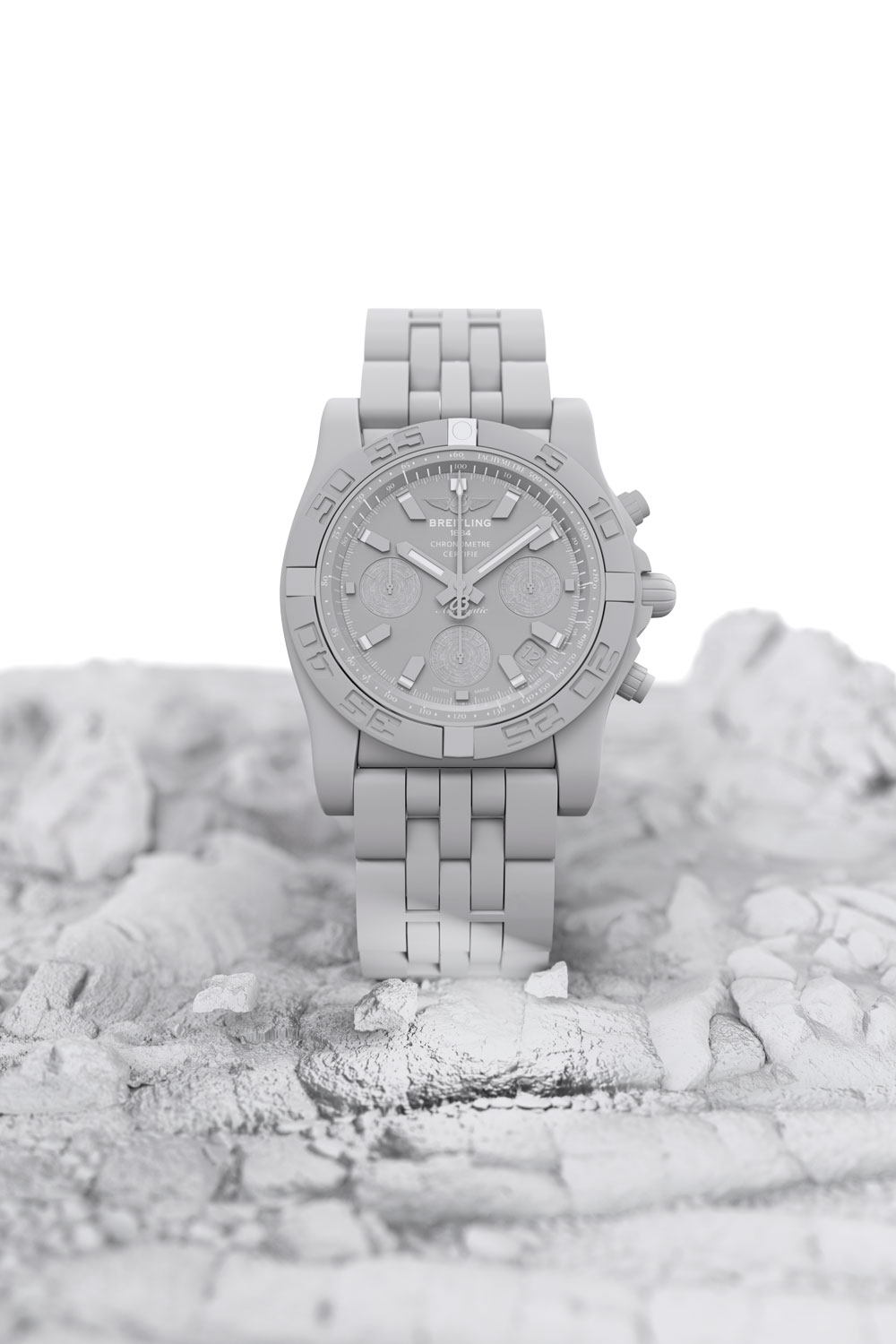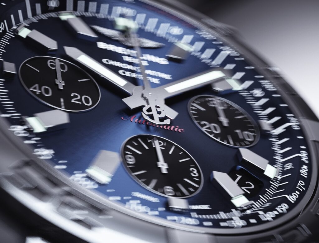Ce projet consiste en la réalisation d’une vidéo et de packshots pour la montre Breitling Chronomat B01, entièrement produites en images de synthèse (CGI).