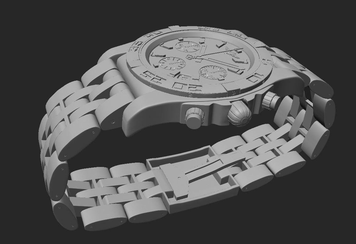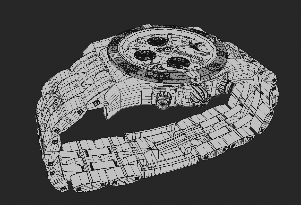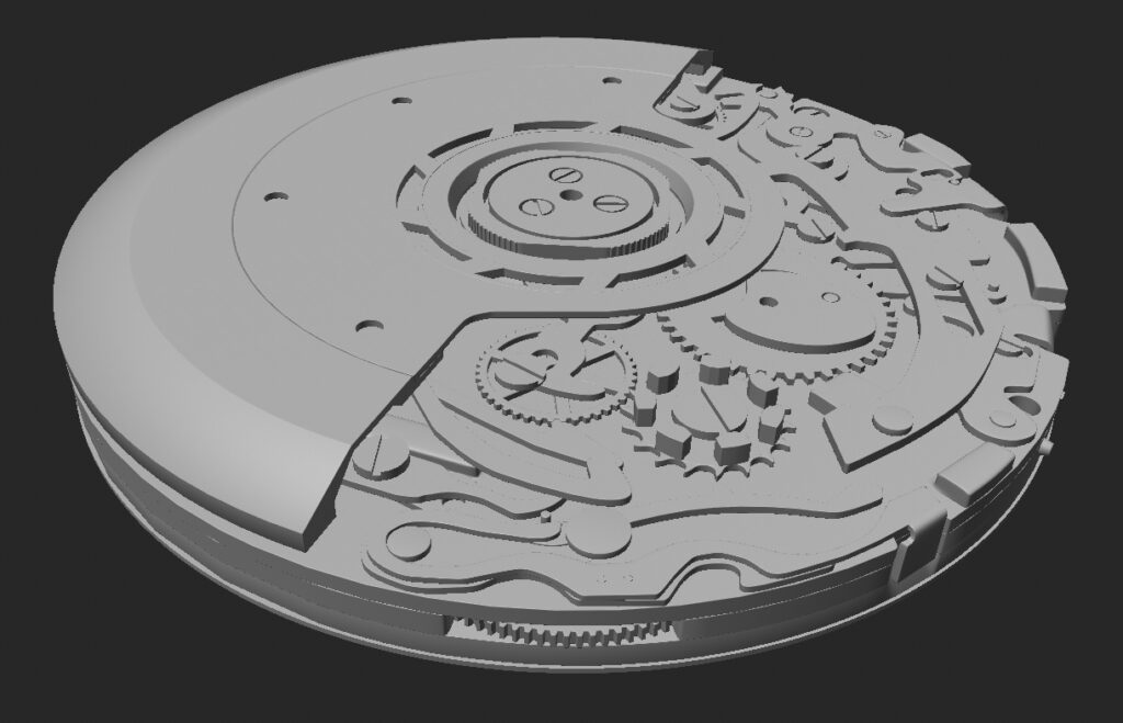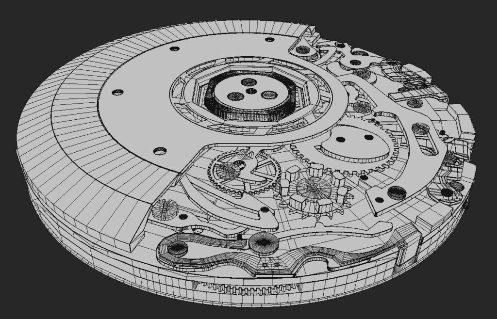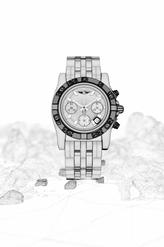 La montre a été modélisée intégralement de A à Z, avec une attention particulière portée à la précision des volumes, des proportions et des détails mécaniques, afin de restituer fidèlement le caractère et le standing de cette pièce d’horlogerie.