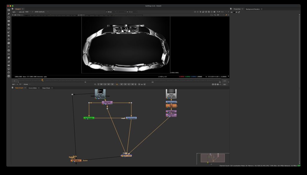Réalisé sur Cinema 4D avec Octane Render, le projet a nécessité un travail approfondi sur la lumière, les reflets et les matières, éléments clés pour sublimer les surfaces métalliques, le verre, le cadran et les finitions. Chaque matériau a été soigneusement ajusté pour obtenir un rendu réaliste et haut de gamme, capable de révéler la richesse des textures et la qualité perçue du produit.