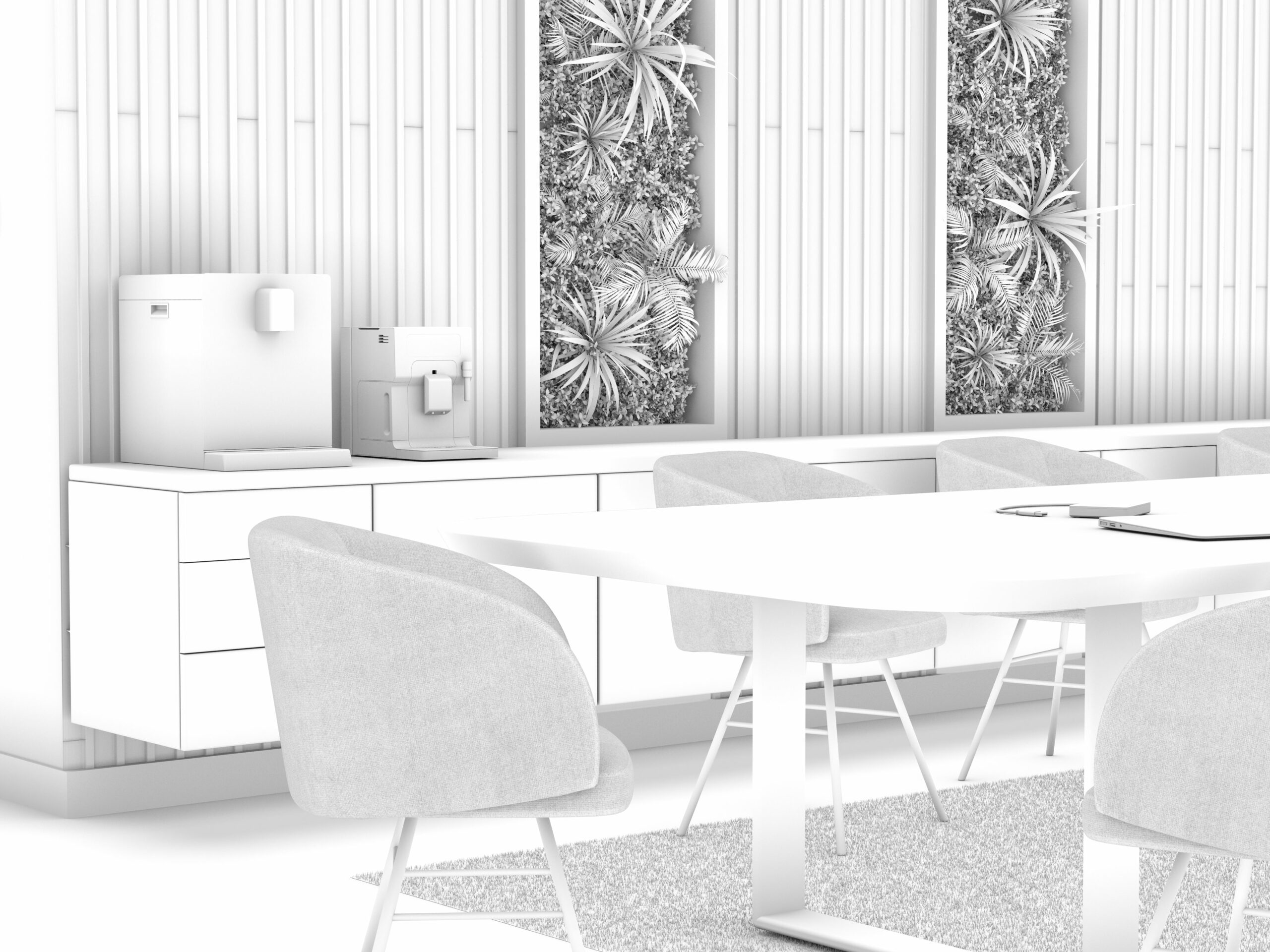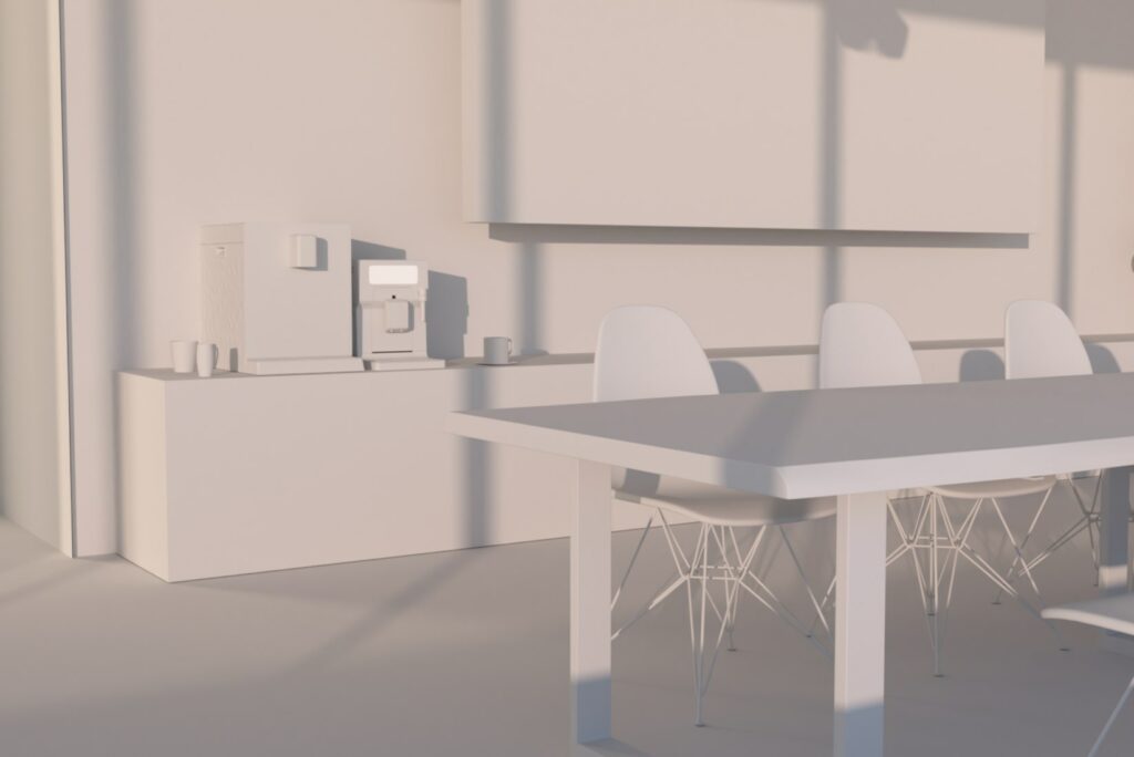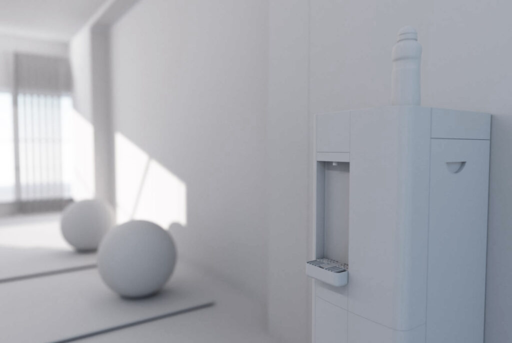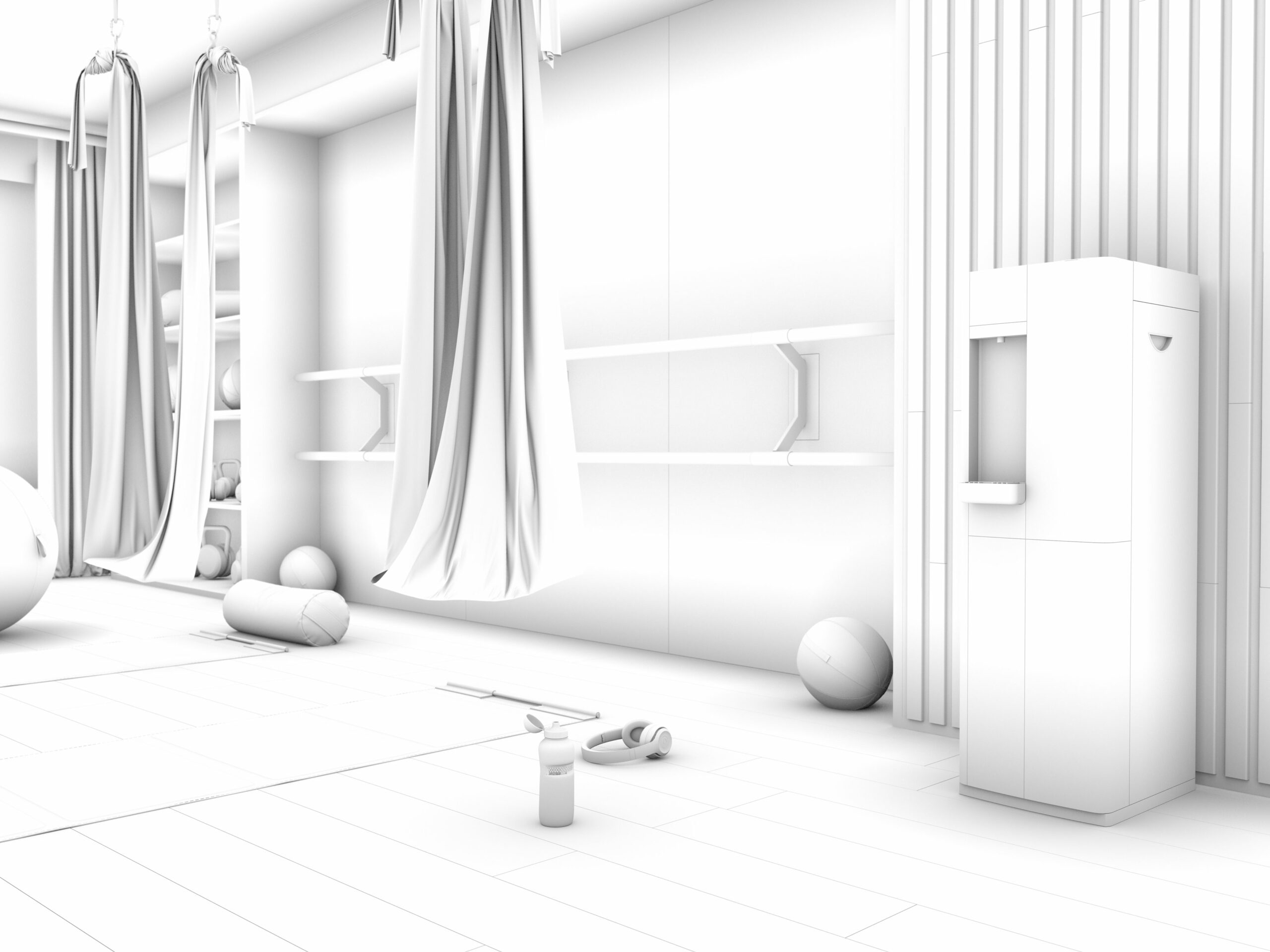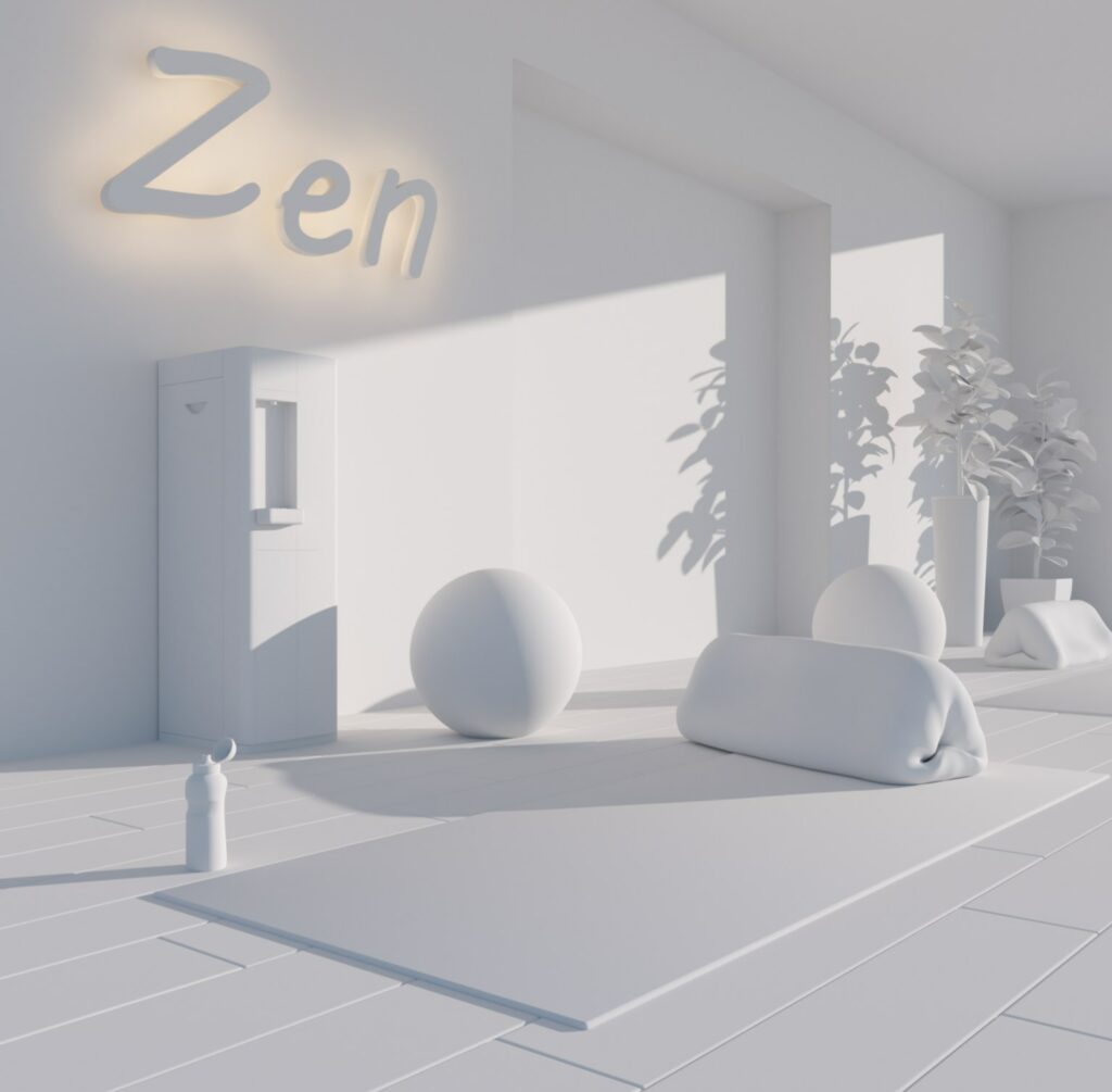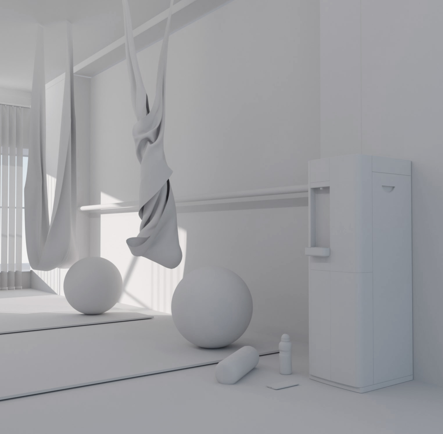 L’ensemble des visuels a été réalisé sous Cinema 4D avec Octane Render. La lumière et les ambiances constituent les points forts de cette série : chaleureuse et envelopante pour la salle de yoga, froide et contrastée chez le barbier, sobre et maîtrisée en salle de réunion, accueillante et neutre dans la salle d’attente. Chaque choix d’éclairage a été pensé pour renforcer la narration propre à chaque lieu tout en valorisant le produit.