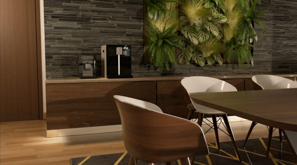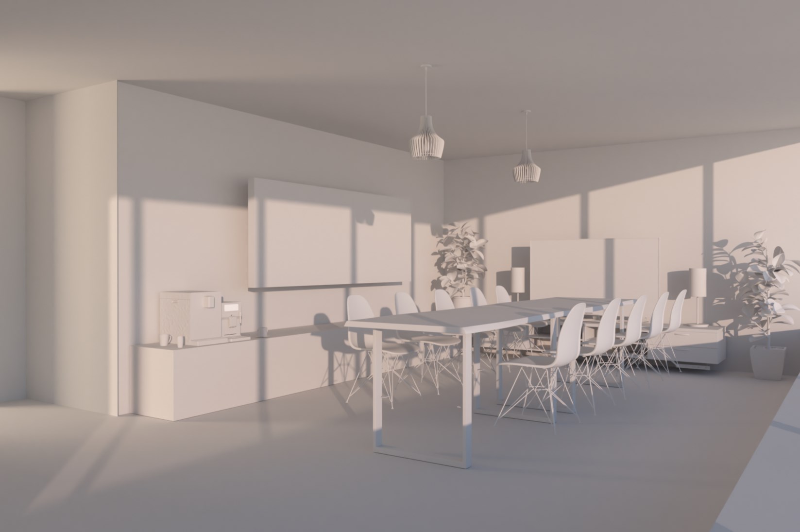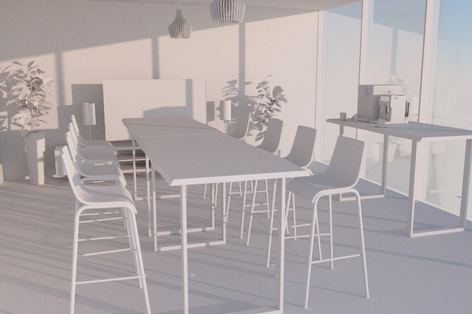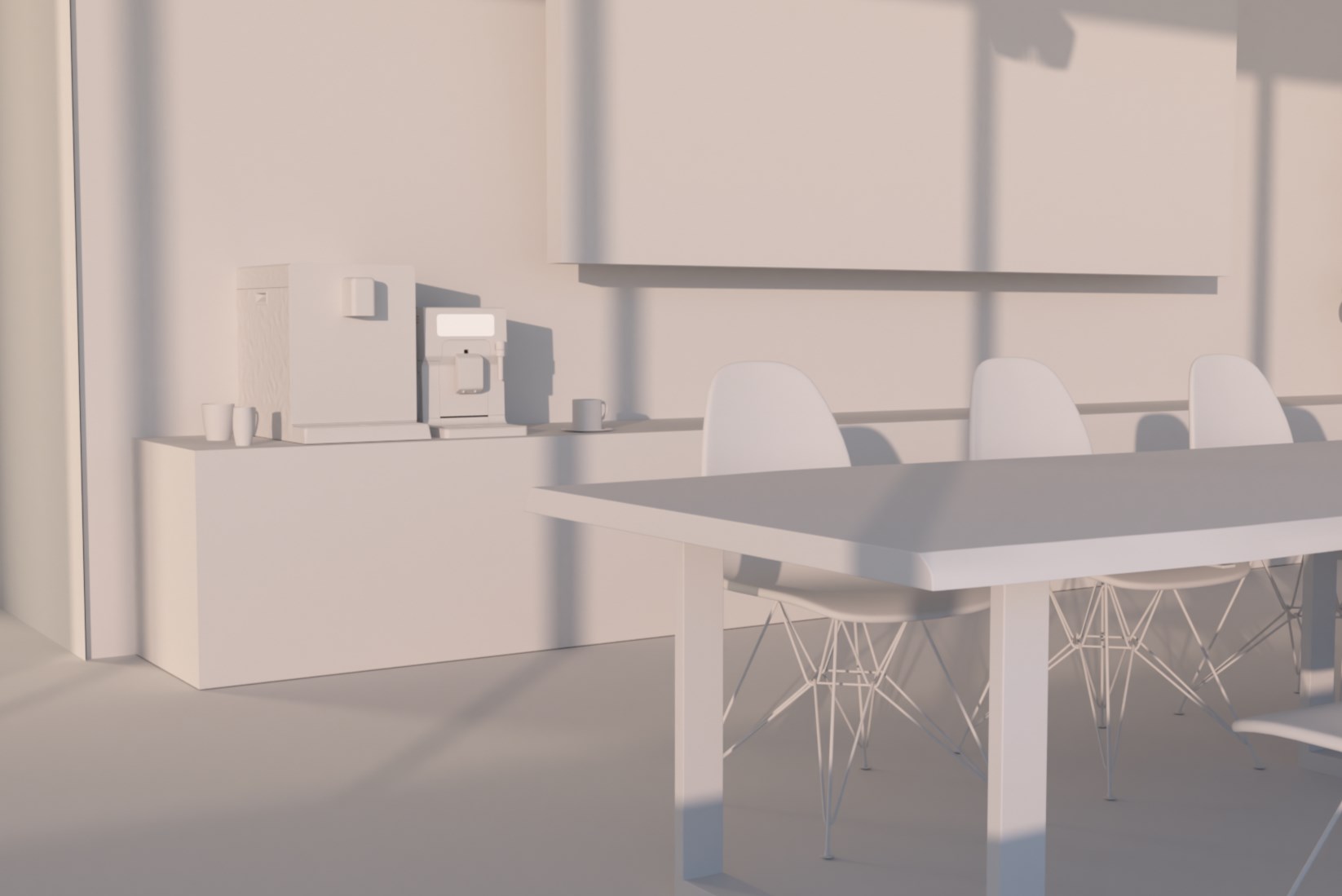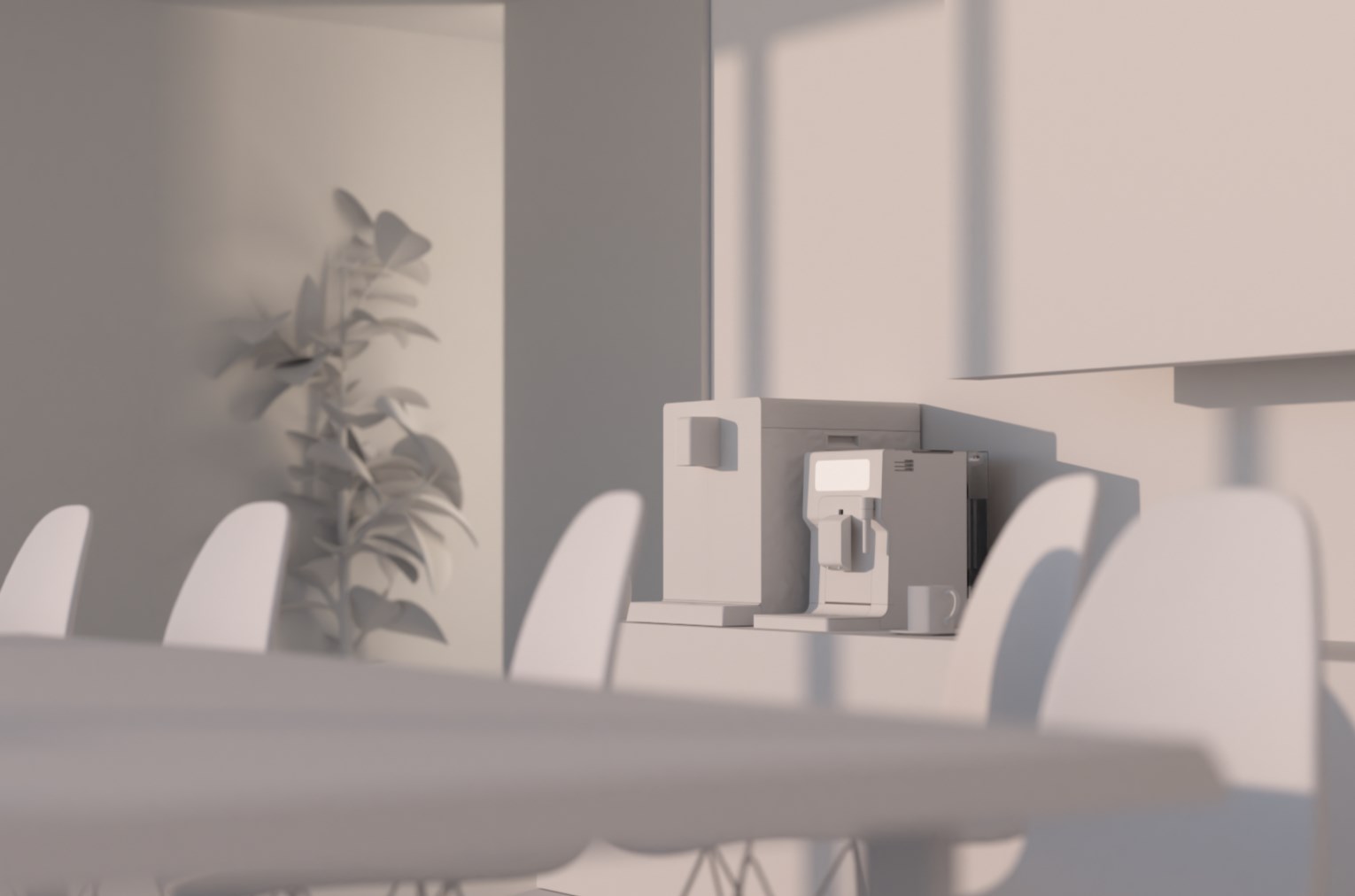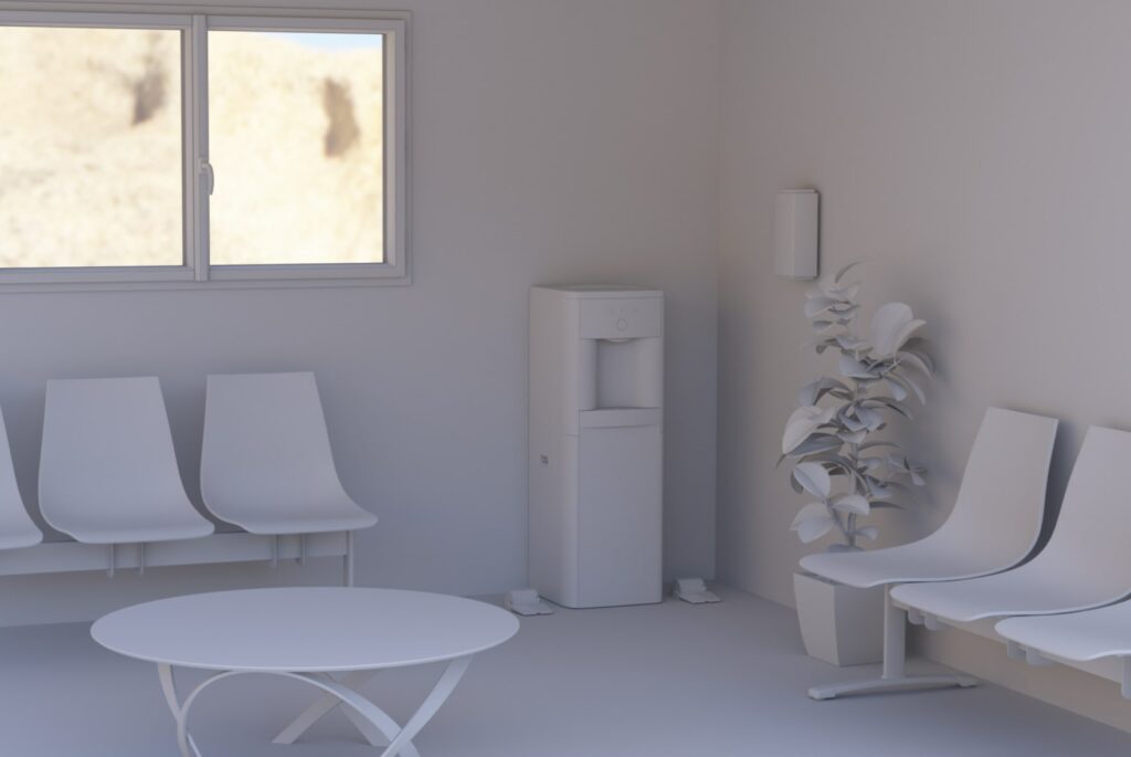L’ensemble des visuels a été réalisé sous Cinema 4D avec Octane Render. La lumière et les ambiances constituent les points forts de cette série : chaleureuse et envelopante pour la salle de yoga, froide et contrastée chez le barbier, sobre et maîtrisée en salle de réunion, accueillante et neutre dans la salle d’attente. Chaque choix d’éclairage a été pensé pour renforcer la narration propre à chaque lieu tout en valorisant le produit.