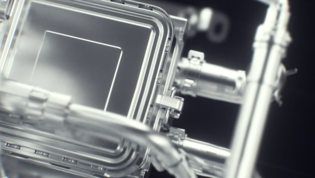 Plusieurs passes de rendu ont été utilisées afin d’isoler et de mettre en valeur les parties fonctionnelles. Cette approche en couches permet une lecture claire de mécanismes complexes, tout en assurant un équilibre entre précision technique et impact visuel.
