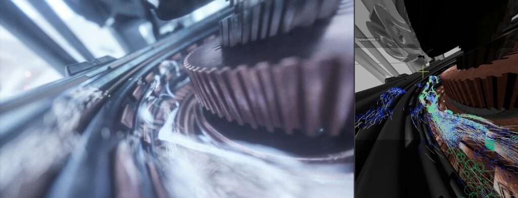 Un travail poussé sur l’animation, les déplacements de caméra et la profondeur de champ a permis de renforcer la sensation de réalisme et de dynamisme. Les mouvements ont été pensés pour révéler progressivement les mécanismes internes et accompagner la lecture technique tout en conservant une forte dimension esthétique.