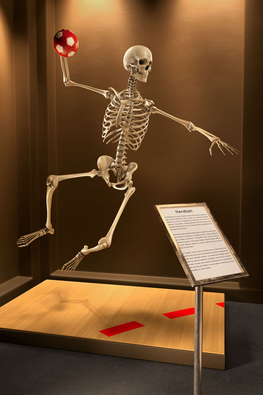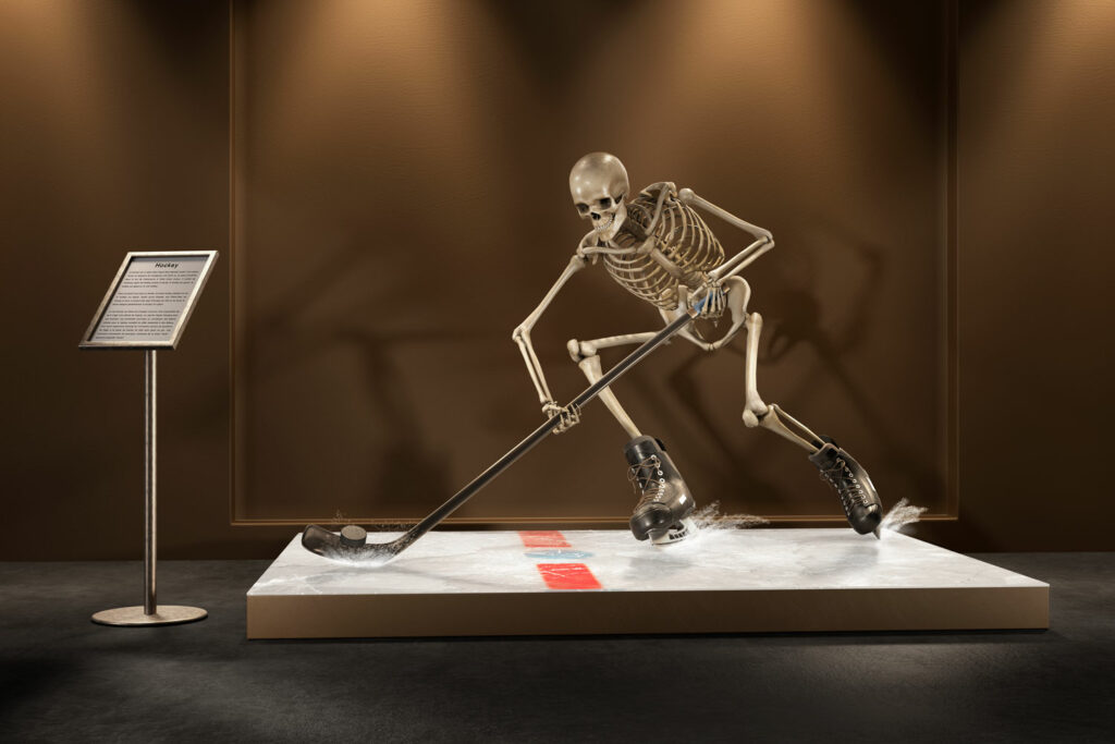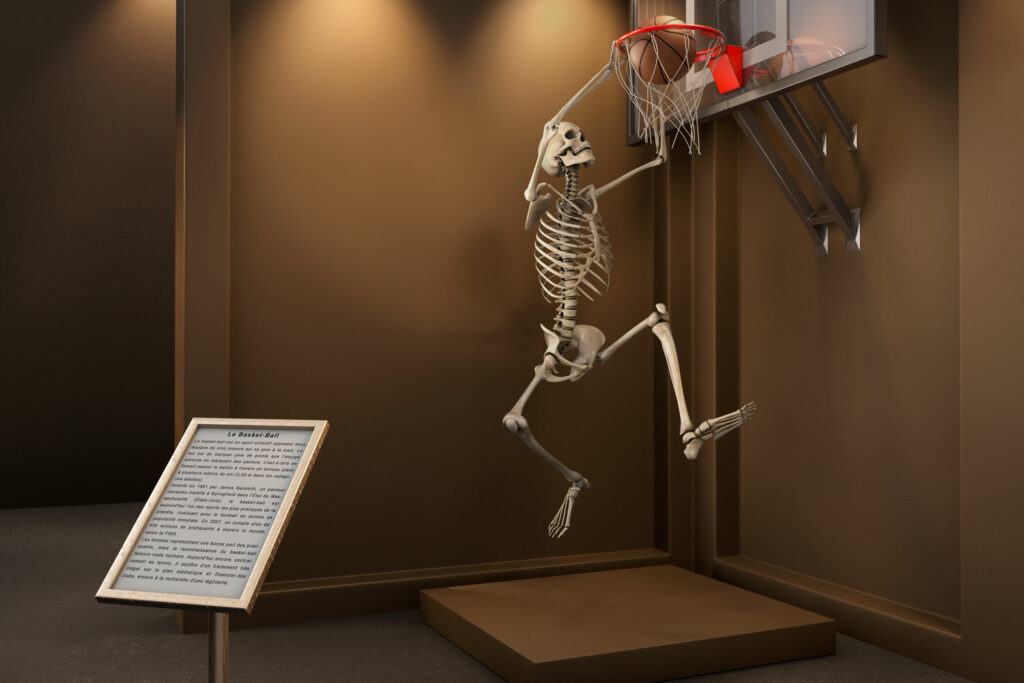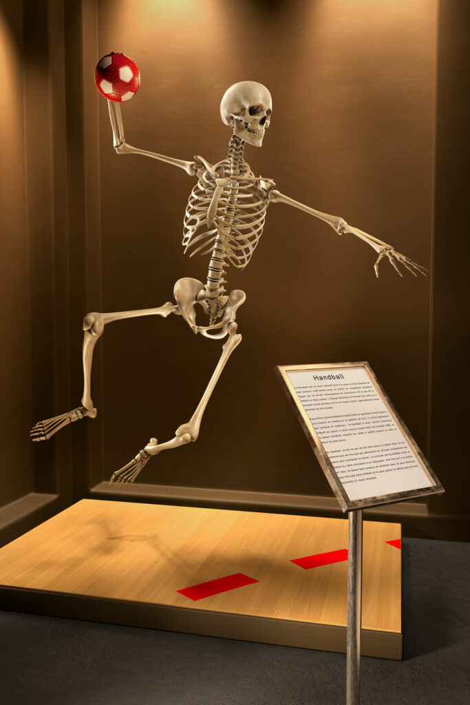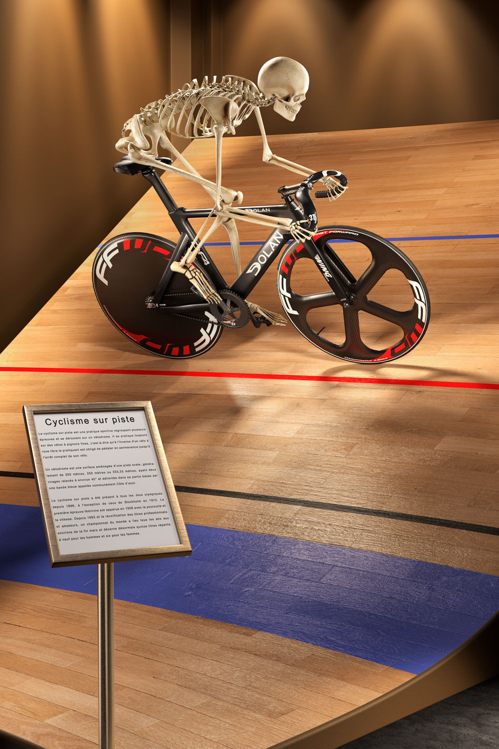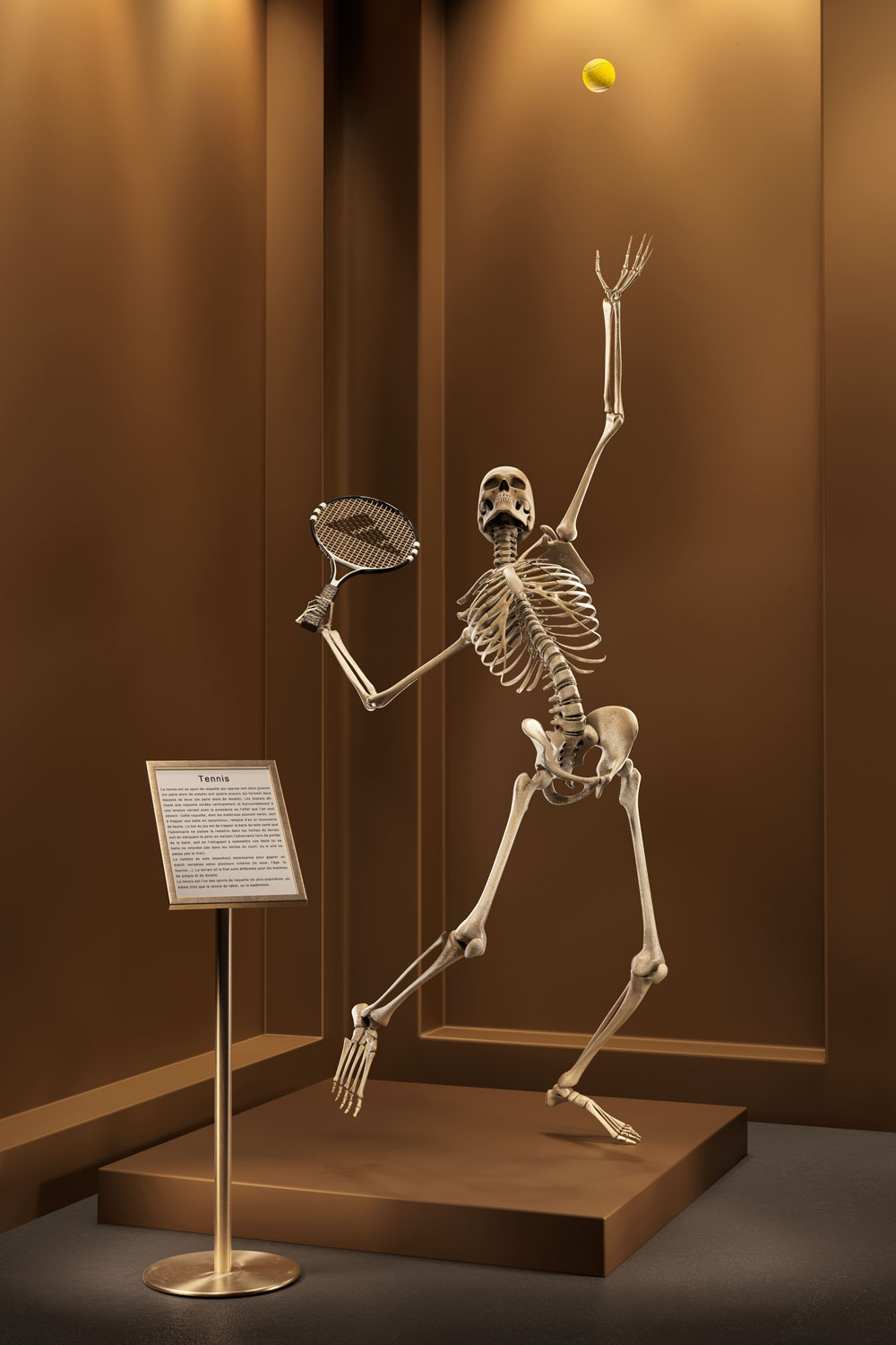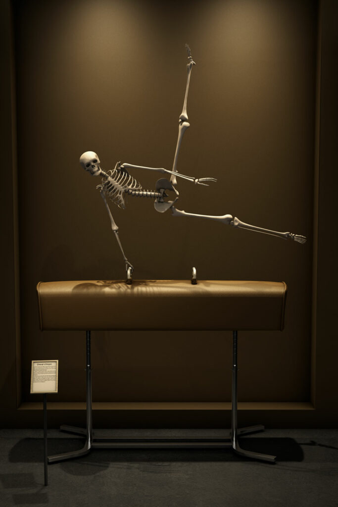 Le choix du squelette comme figure centrale permet de dépouiller le geste de toute identité individuelle pour en révéler l’essence pure. Il devient ainsi un symbole d’universalité et d’homogénéité humaine, mettant en lumière l’émotion brute du mouvement sportif.