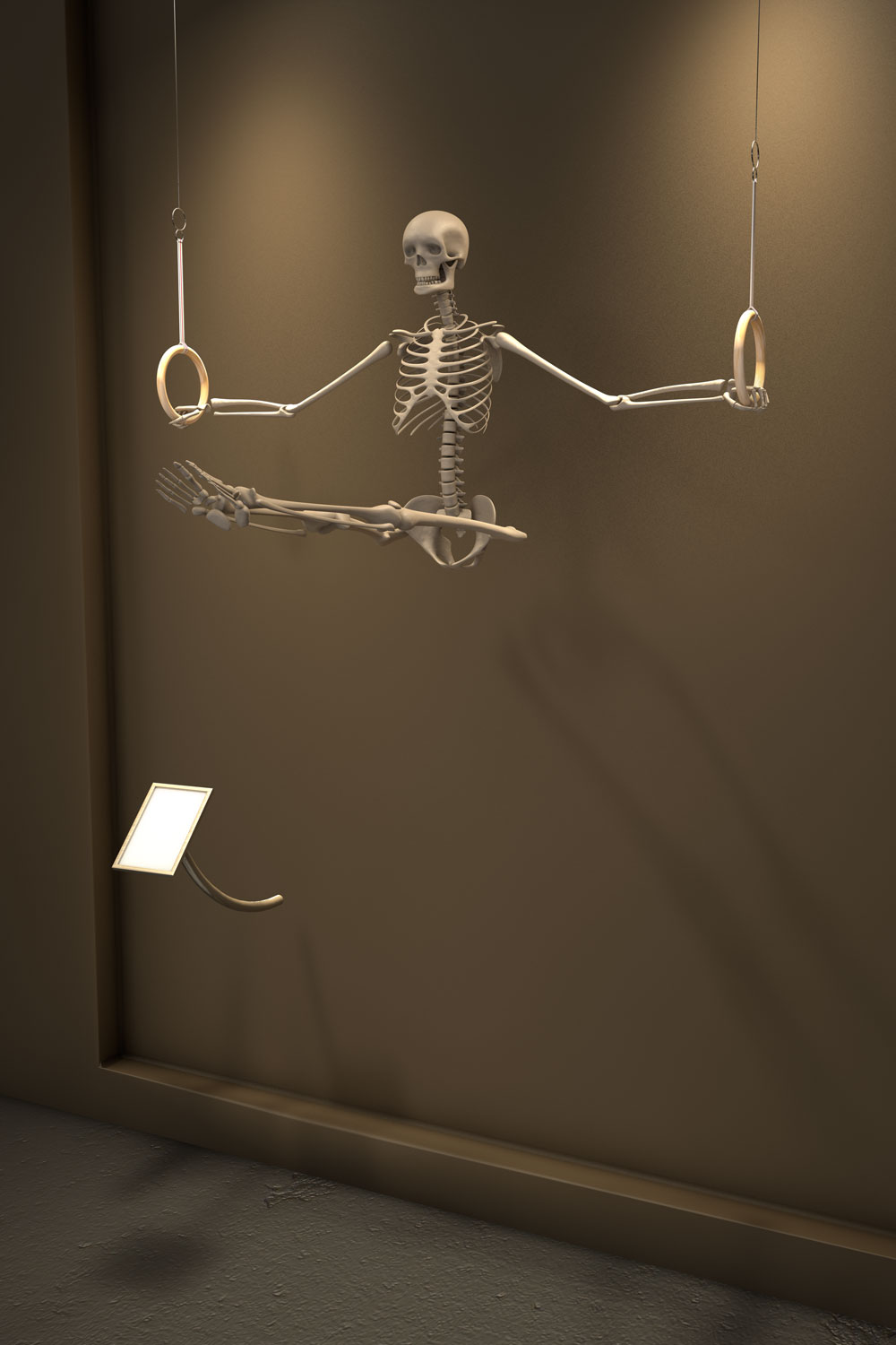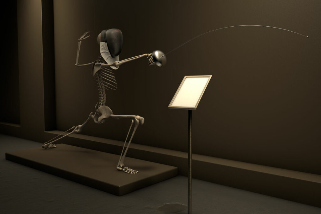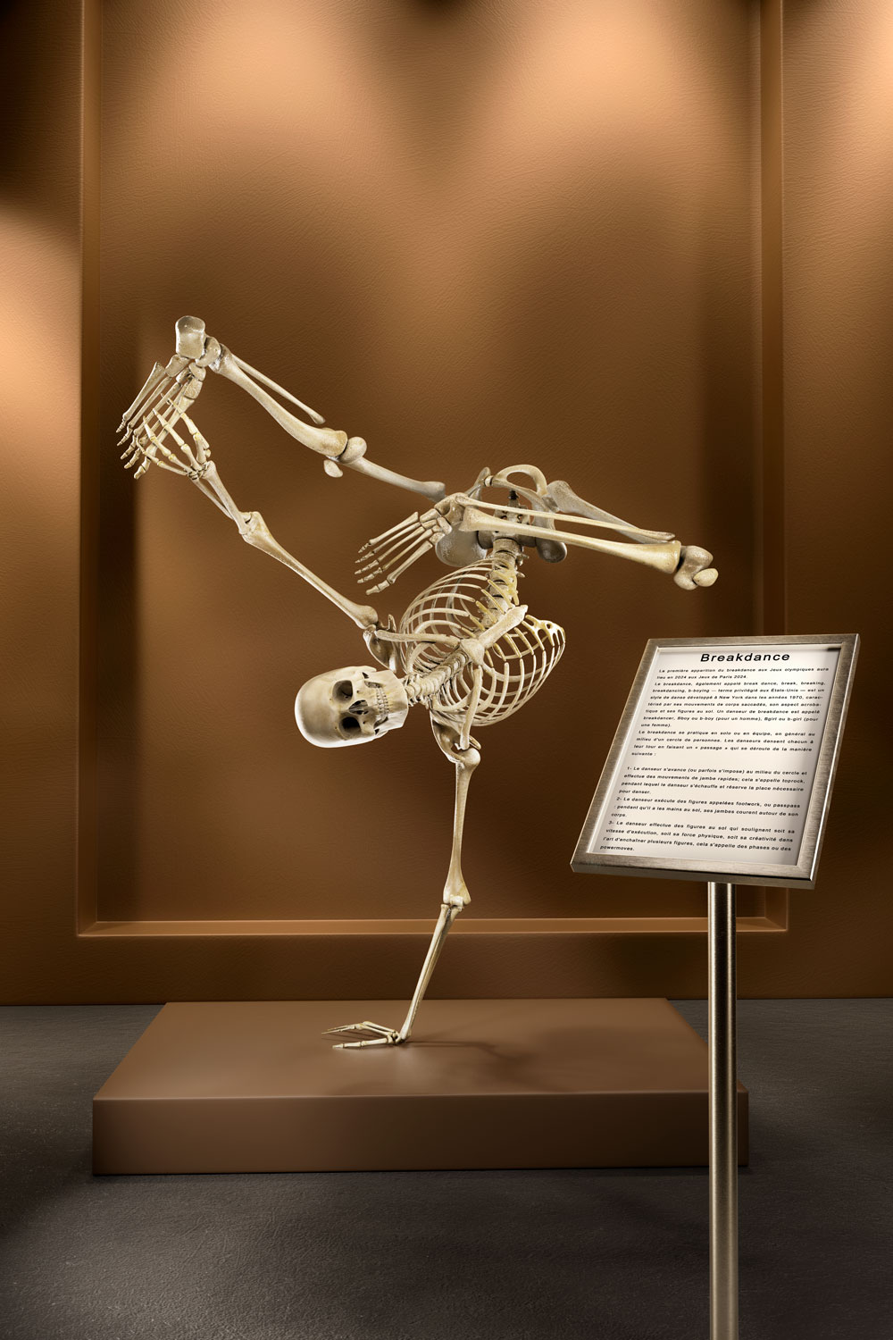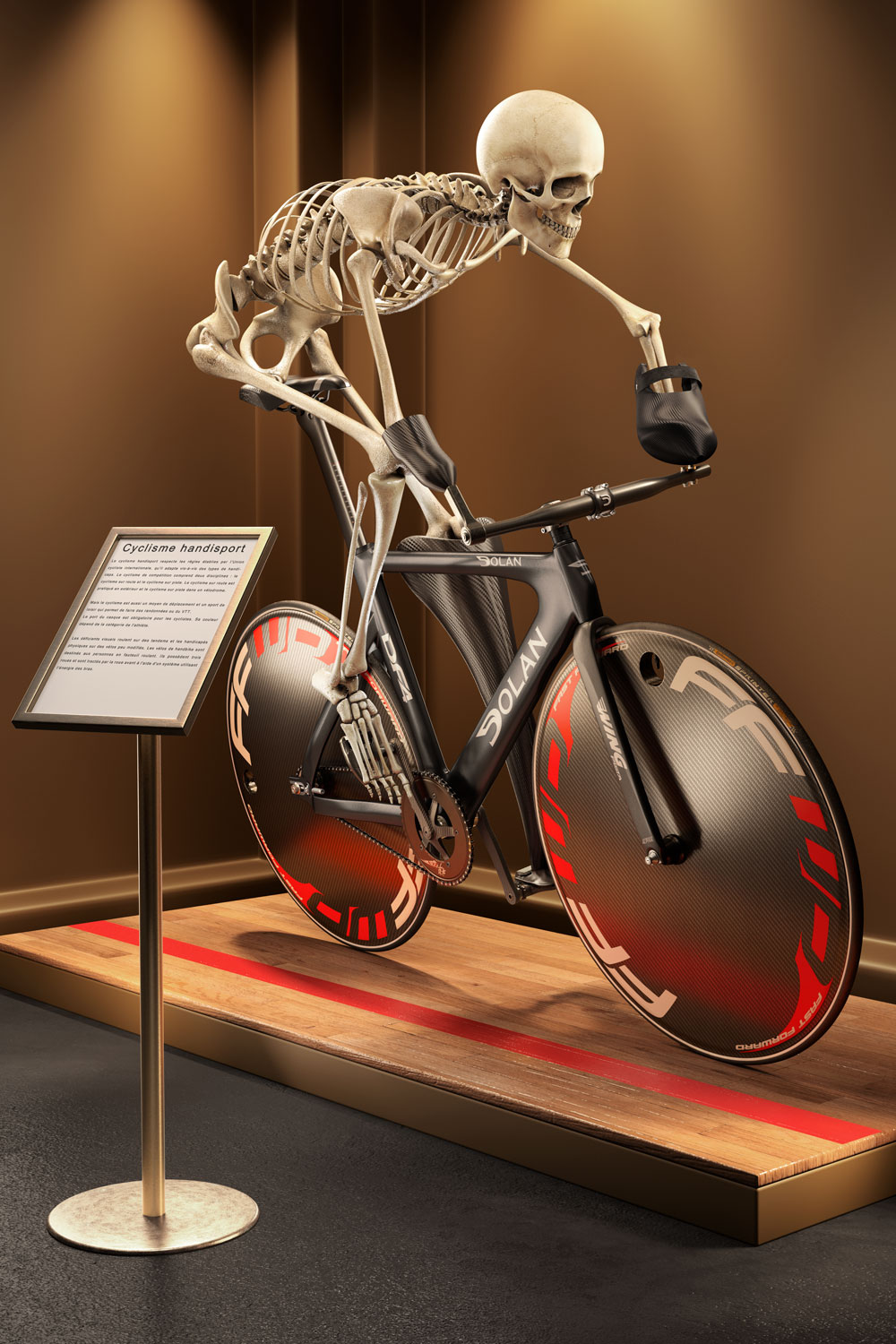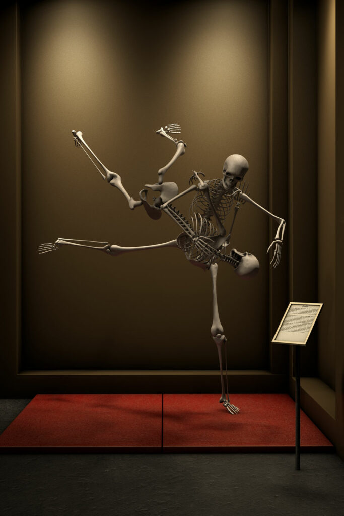 Le choix du squelette comme figure centrale permet de dépouiller le geste de toute identité individuelle pour en révéler l’essence pure. Il devient ainsi un symbole d’universalité et d’homogénéité humaine, mettant en lumière l’émotion brute du mouvement sportif.