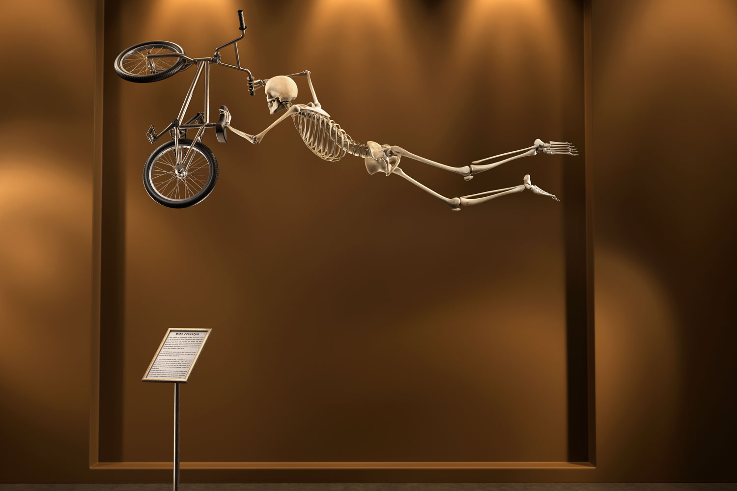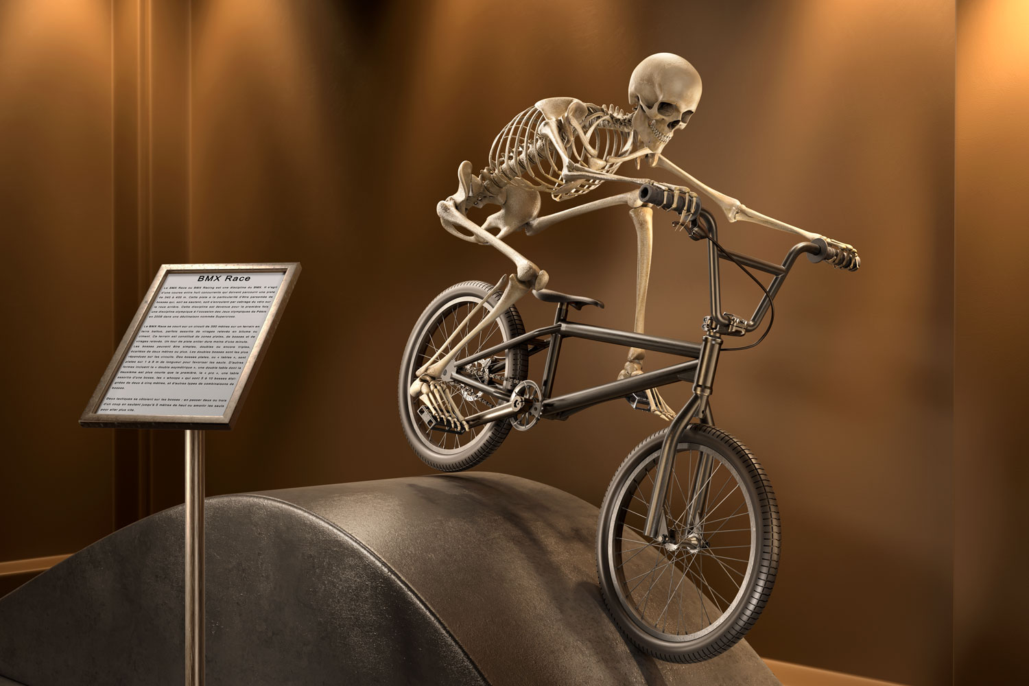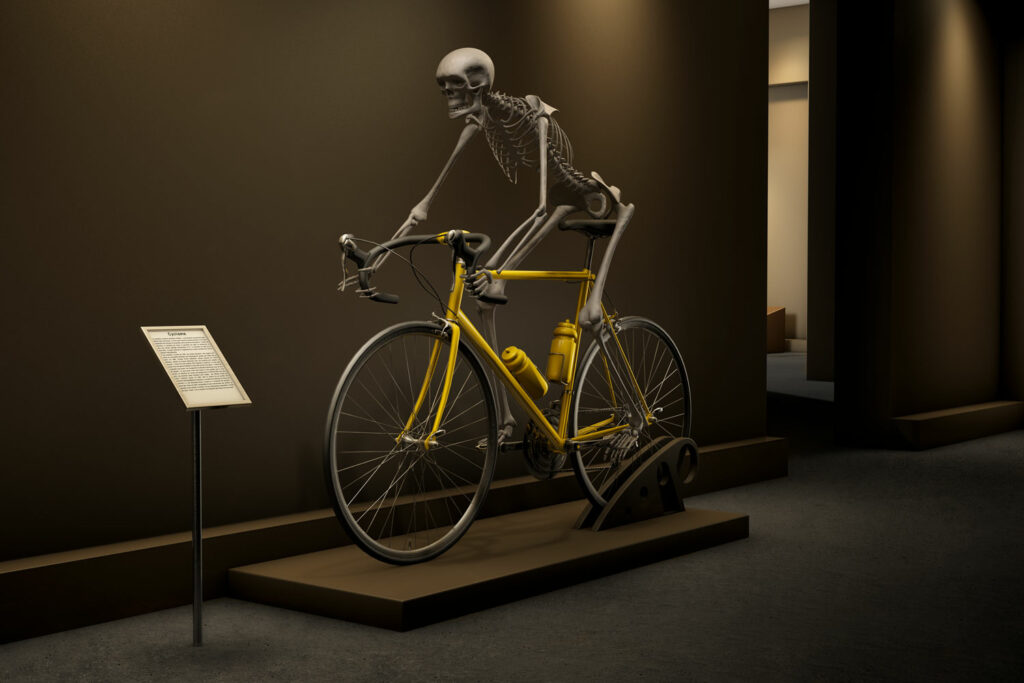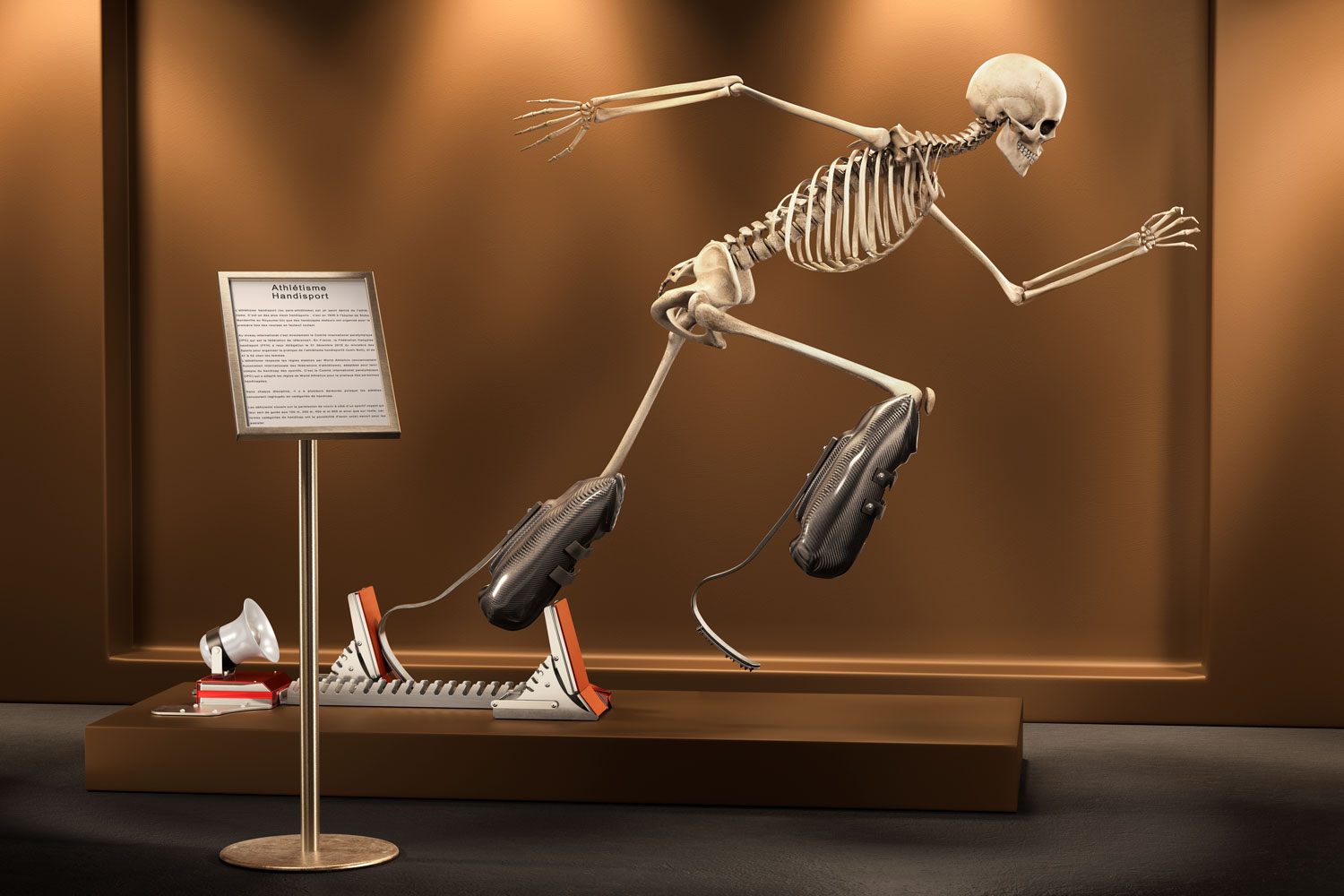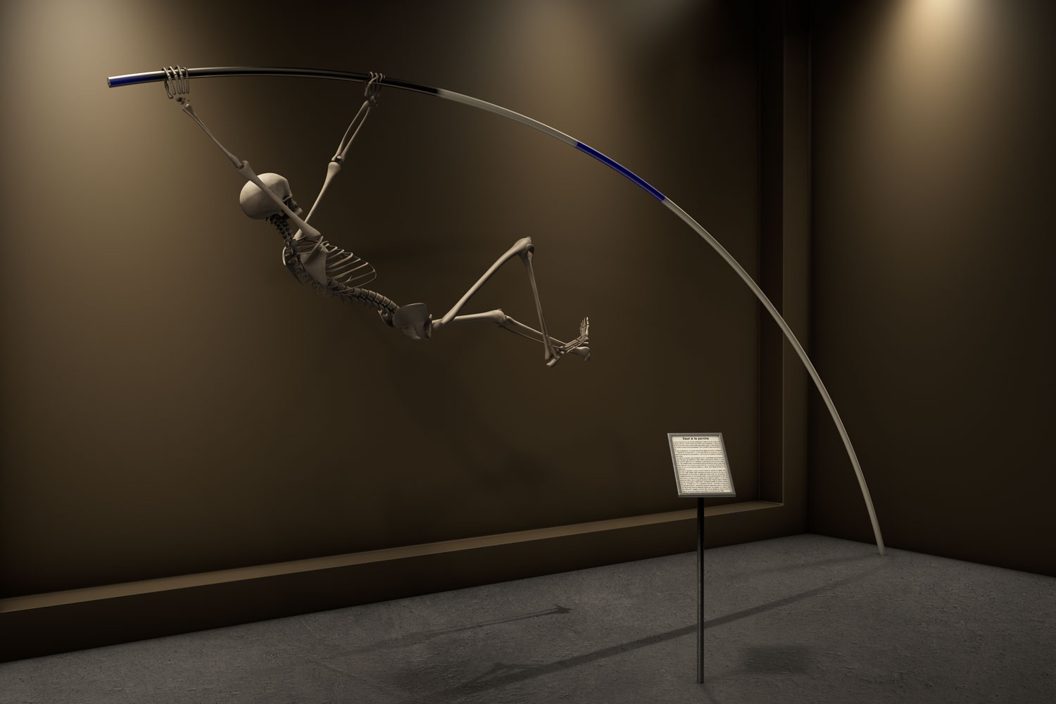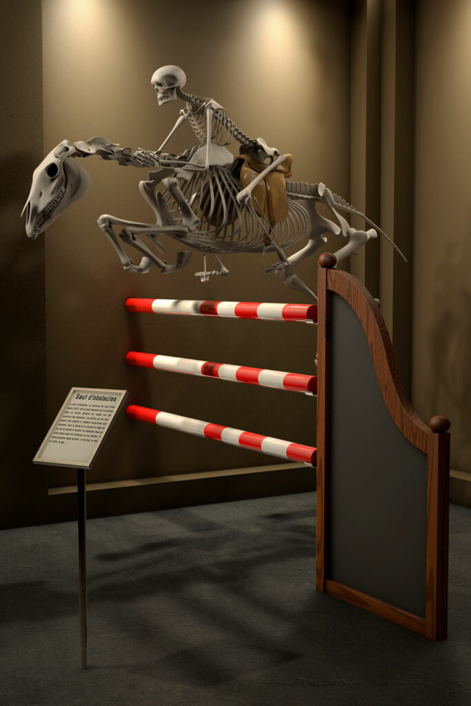 Le choix du squelette comme figure centrale permet de dépouiller le geste de toute identité individuelle pour en révéler l’essence pure. Il devient ainsi un symbole d’universalité et d’homogénéité humaine, mettant en lumière l’émotion brute du mouvement sportif.