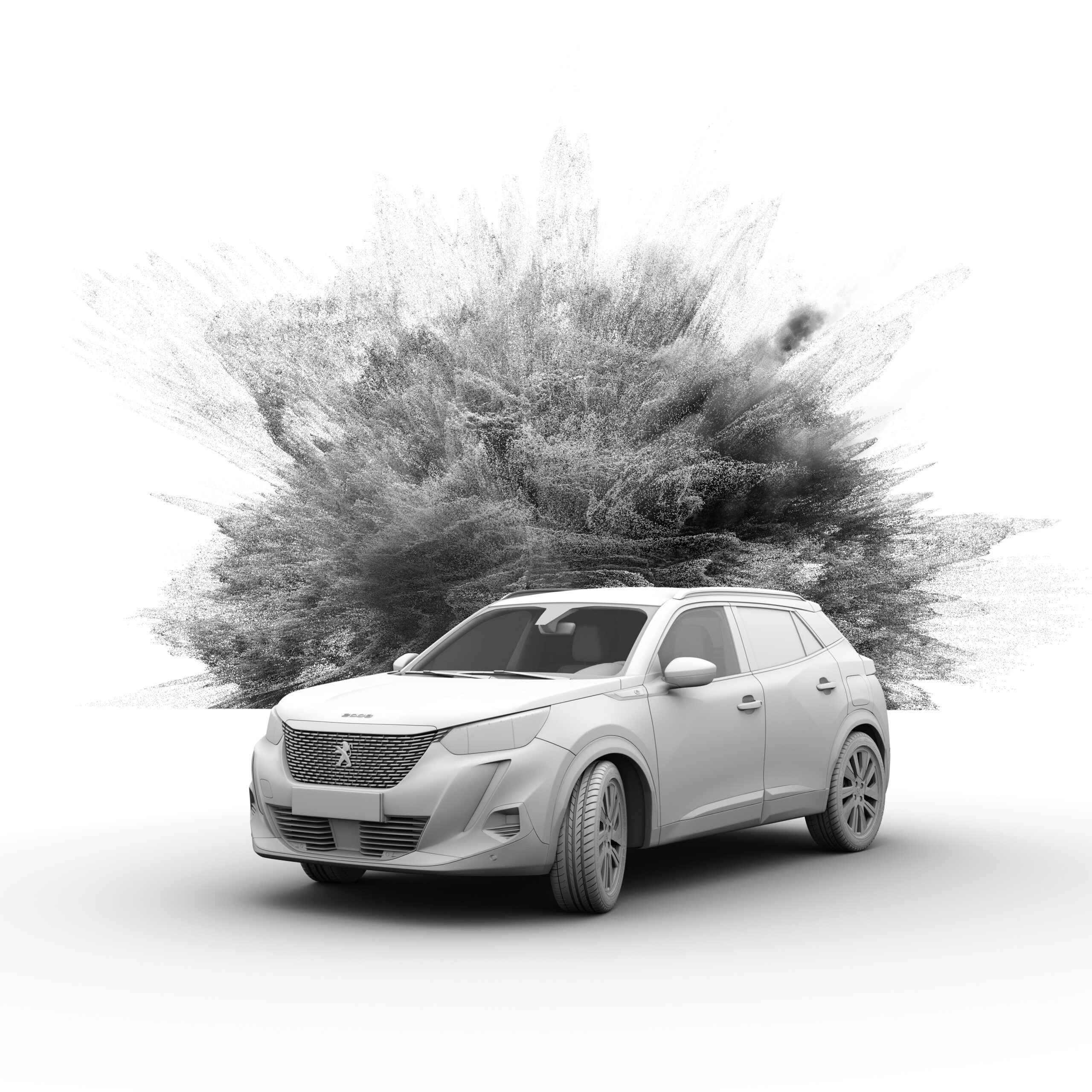 Cette série d’images met en scène un véhicule Peugeot entièrement réalisé en CGI, éclairé en conditions studio, dans une approche packshot volontairement maîtrisée et précise.